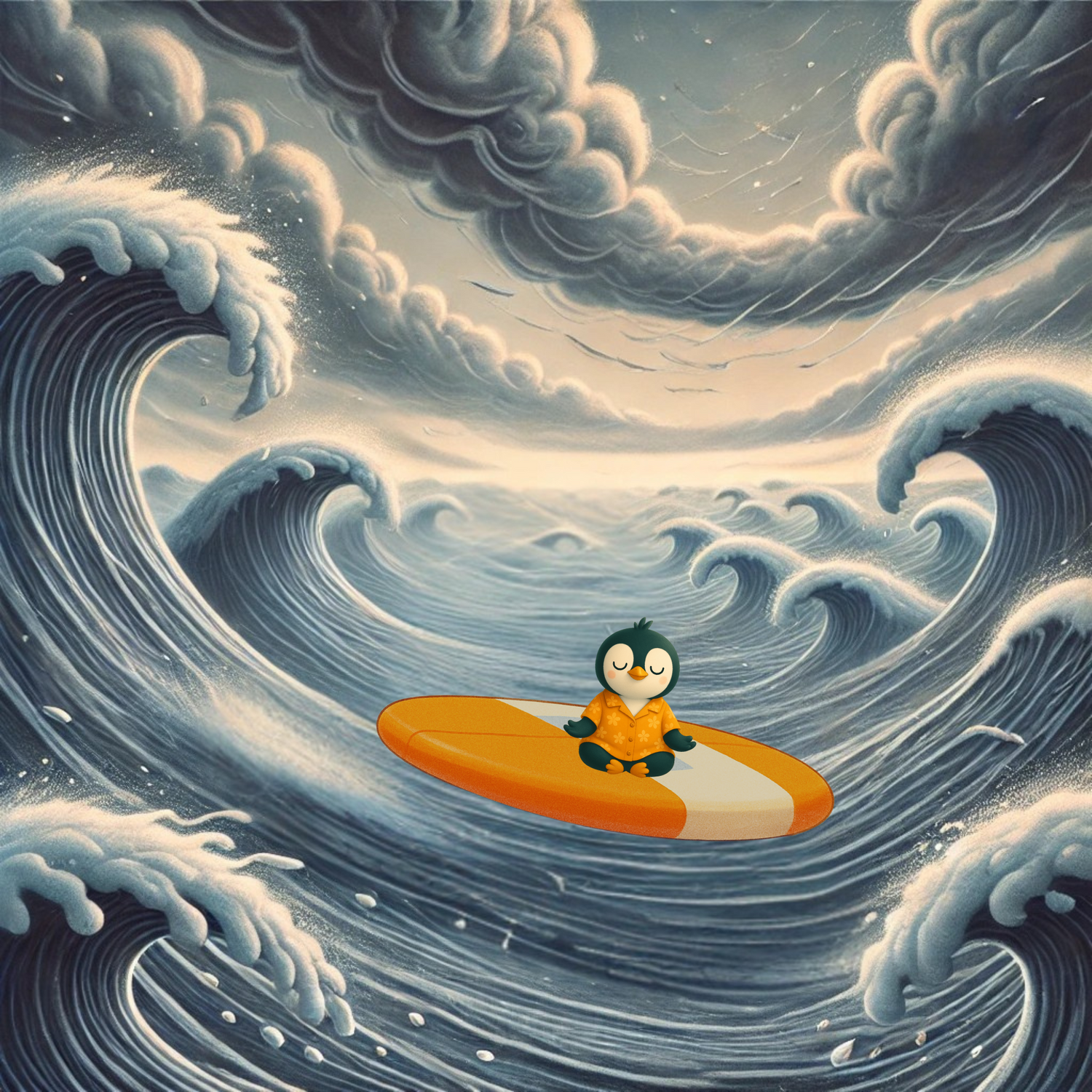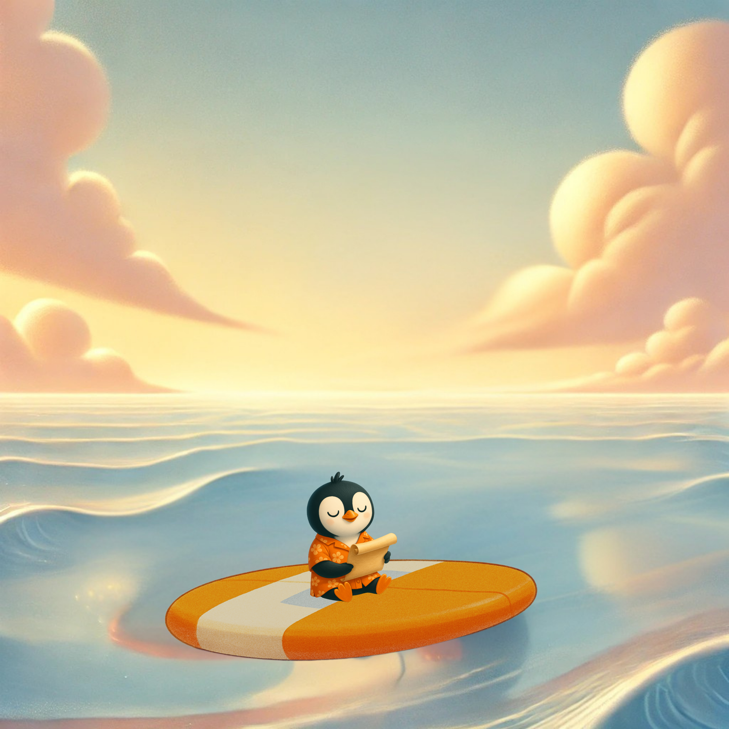 The story follows a thoughtful little penguin who sets out on a mindful journey across the ocean, carried on a surfboard he once found from Maui. As he drifts toward Kauaʻi, he learns to live mindfully and embrace the lessons of nature.